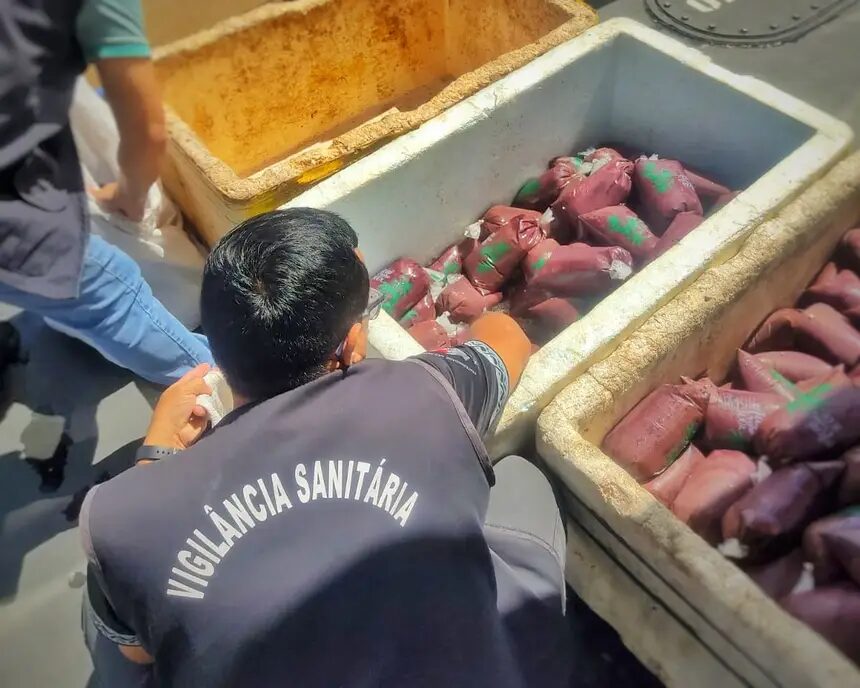 O produto foi descartado em local regulamentado pela Vigilância Sanitária. A ação integra as atividades rotineiras de fiscalização realizadas na Base Fluvial, considerada ponto estratégico de controle no Rio Amazonas. O trabalho é destinado à verificação de cargas, embarcações e passageiros, além do combate a irregularidades que possam oferecer riscos à saúde pública e à economia local.